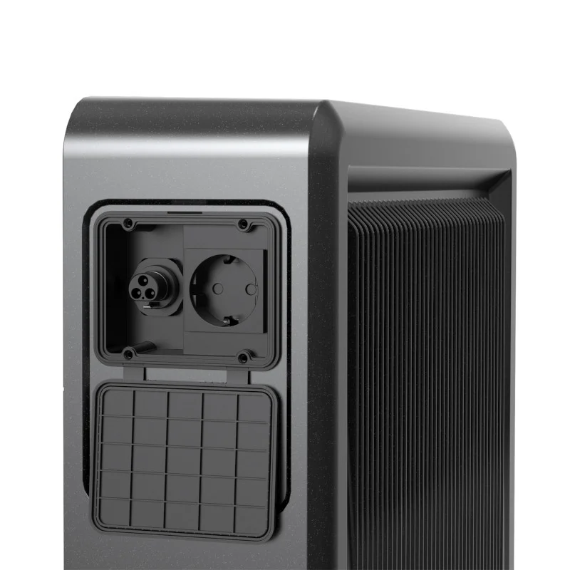 Der integrierte Mikrowechselrichter kann bis zu 2500 W leisten und ist ab Werk auf 800 W gedrosselt. Neben dem Netzanschluss verfügen die Speicher auch über eine Backup-Steckdose zur Direktabnahme von bis zu 2500 W.